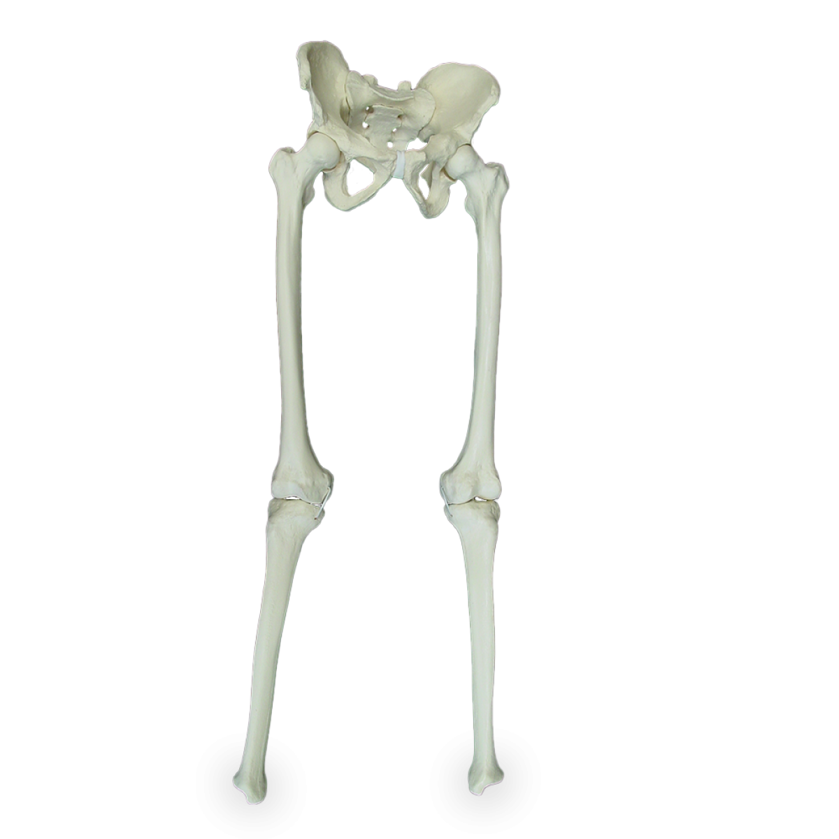 Com propriedades mecânicas semelhantes ao osso humano, o conjunto oferece anatomia completa da pelve e membros inferiores proximais, possibilitando perfurações, cortes, fresagens e instalação de implantes e instrumentais reais.